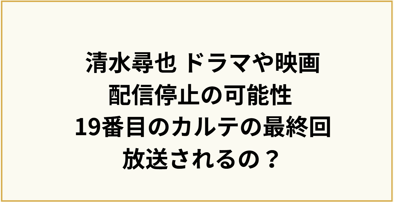 清水尋也 ドラマや映画の配信停止の可能性 19番目のカルテの最終回は放送されるの?