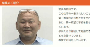 塾の公式サイトにも掲載されていた写真で、「子どもたちを第一志望校に合格させるのが一番の喜び」と語っていました。