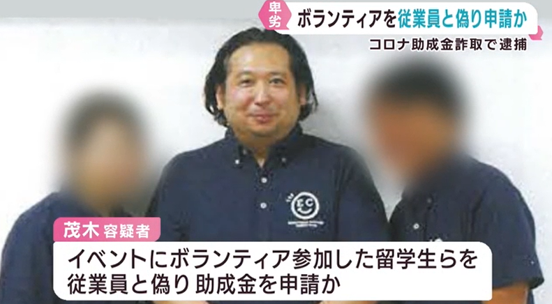 実際には、助成金の対象となる正規の従業員ではなく、イベントにボランティアとして参加していた留学生らを「雇用されている従業員」と偽って申請していたとみられています。