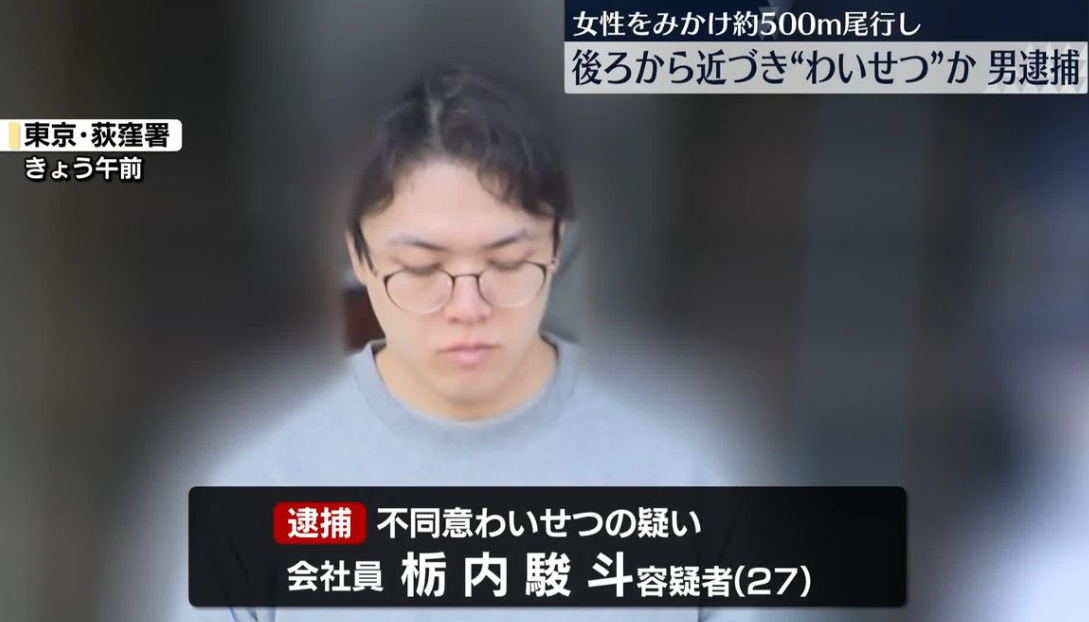 栃内駿斗容疑者(27)は、東京・練馬区で帰宅途中の20代女性に後ろから近づき、わいせつな行為をした疑いで逮捕されました。